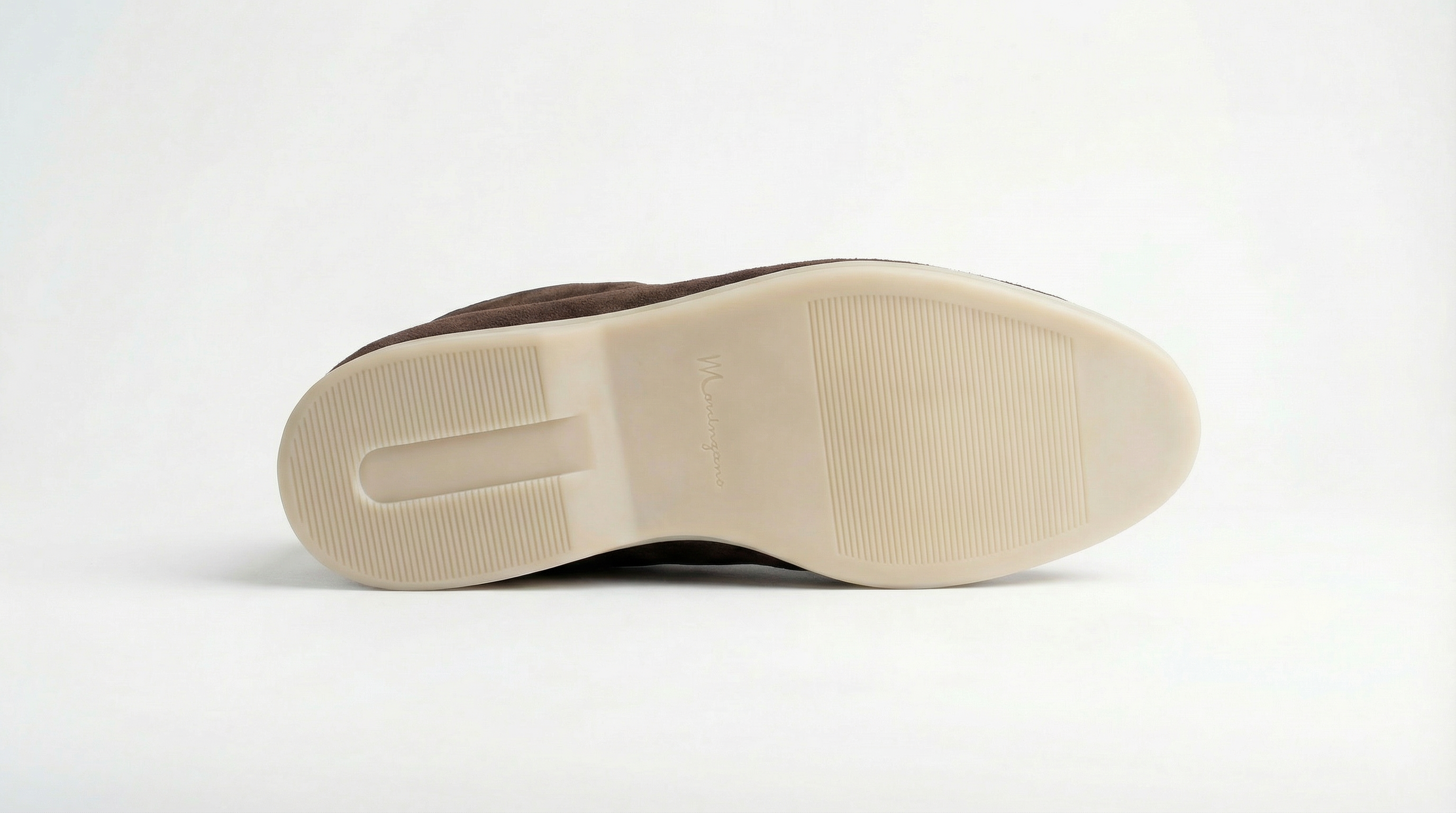 De robuuste, maar elegante rubberen zool zorgt voor optimale grip op koude en natte ondergronden, terwijl de ronde neus het geheel een tijdloze en stijlvolle uitstraling geeft.